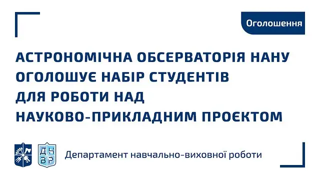 Головна астрономічна обсерваторія НАН України оголошує набір студентів для роботи над науково-прикладним проєктом