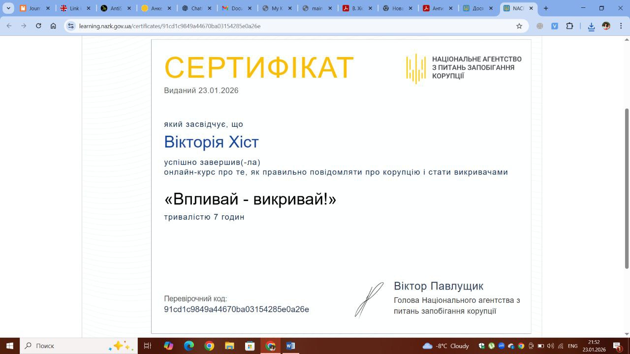 Кандидат фізико-математичних наук за спеціальністю 01.04.07 – “фізика твердого тіла”